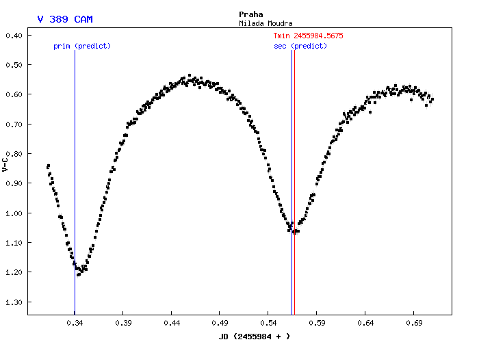 Unlike deep sky objects, variable stars look often almost identical on the first sight and their observing is nowadays done almost exclusively with digital imaging techniques. The telescope is equiped with CCD camera (optionally with filters) and powered mount that follows the selected star throughout the night. At the end of the night you get a set of hundreds of images and once you process them, you have a light curve – graph showing change of star brightness in time. From the graph (more from a lot of them!) you can determine the type of variability, origin of variability (eclipses, pulsations, multiple star system, black hole, ...) and even discover a new variable star – I've had a luck to catch a two of them :)